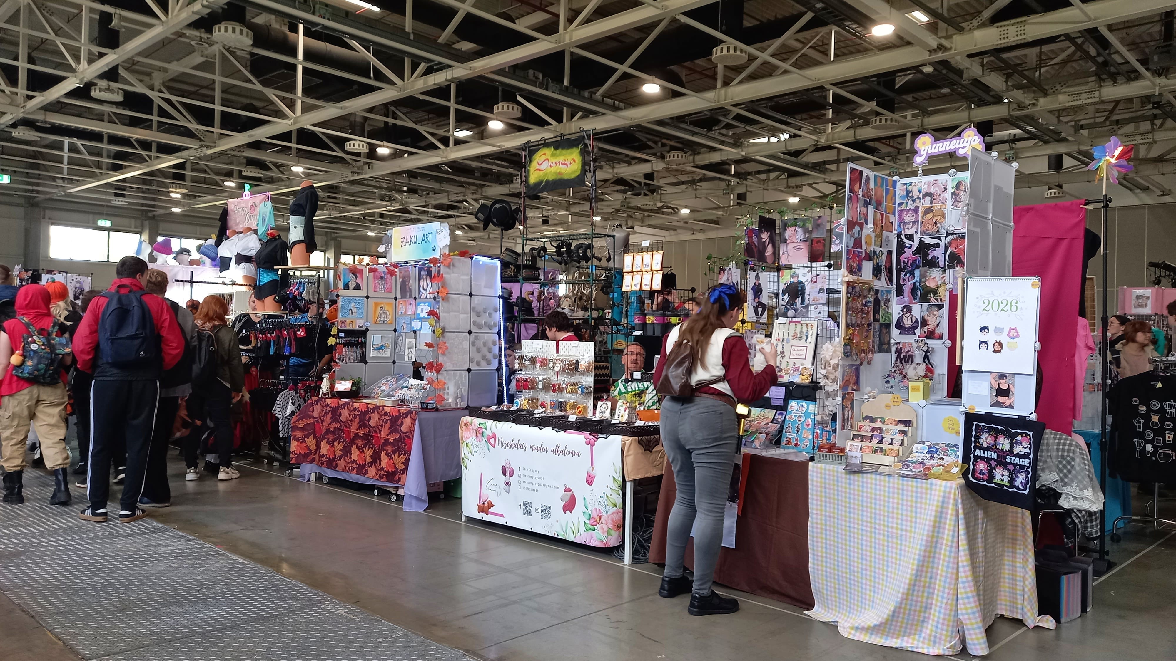 Az épületbe beérve egyből megcsapta a látogatókat a fülledt levegő és az émelyítő ételszag. A programok több termen belül zajlottak, amelyek között viszonylag könnyen el lehetett tévedni. Két hatalmas teret biztosítottak a standok számára, így a helyszín egy alternatív termékeket árusító vásár hatását keltette, ahol kaphatóak voltak például mystery boxok, amelyek sorozatokkal kapcsolatos zsákbamacskának felelnek meg.